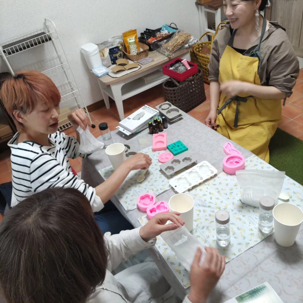 【開催報告】アロマストーンワークショップ 藤田すみえ先生をお招きし、アロマストーンづくりを開催しました。 シリコン型から石膏を外すときの快感… 「カ〜ワ〜イイ〜」のハモリ(笑) これはクセになる すごく簡単で楽しかったので、リクエストあれば喜んで開催します!!(先生の都合も聞かずに勝手だな、オイ) 待ってる間のおしゃべりが楽しすぎた! 石膏に垂らすオイルも、とても純粋に香ります。 ぜひサロンに来た時に、確認してみてください #アロマストーンワークショップ#アロマオイル#安全に使える